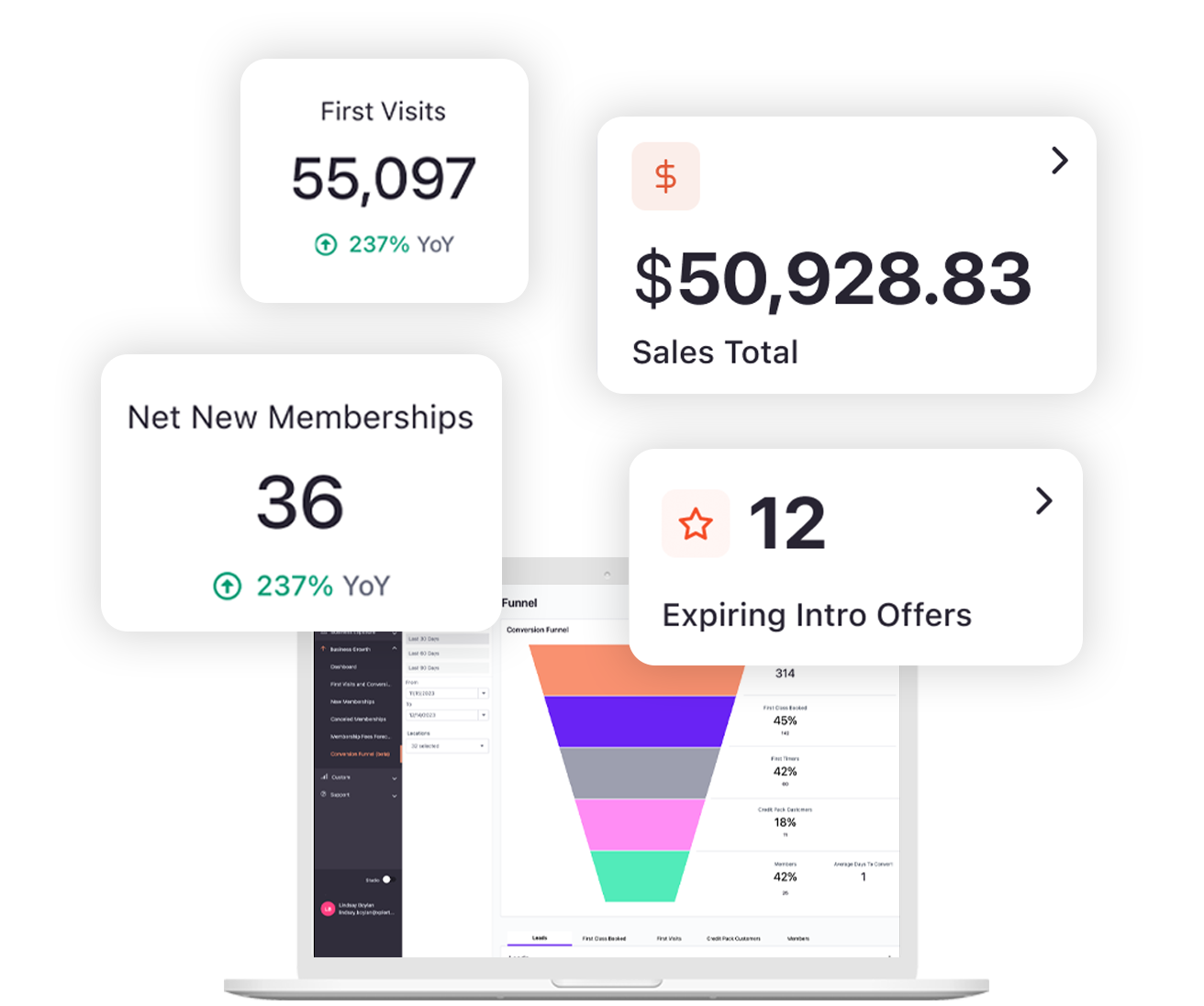 - Unified data, real-time insights: Track performance across all studios: class fill rates, instructor utilization, top revenue drivers...and make smarter decisions faster.