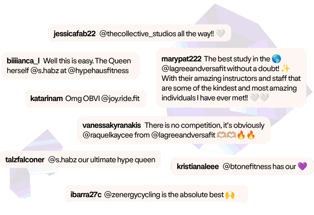 We collaborate with fitness ambassadors and creators who share our passion for community and movement, amplifying the stories and spirit of boutique fitness to inspire connection and growth across studios.