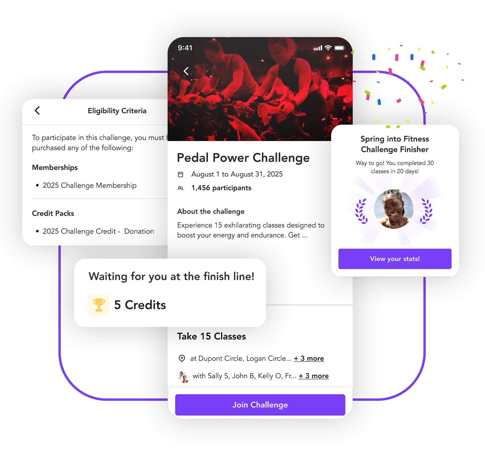 • Engage your members with milestones, tags, streaks, in-studio fitness challenges, and more
