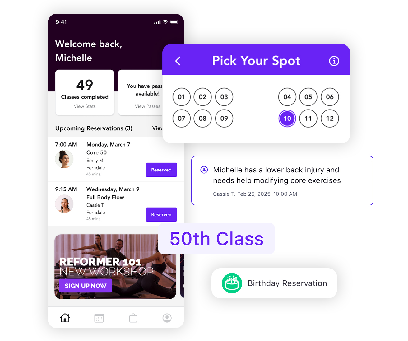 • Consistent brand experience on your website, in your branded app, in-studio check-ins, and events beyond your 4 walls