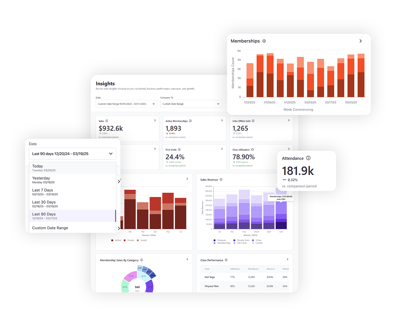 • Quickly see figures like total revenue, class attendance, membership sales, client retention rates, and more (no spreadsheets!)
