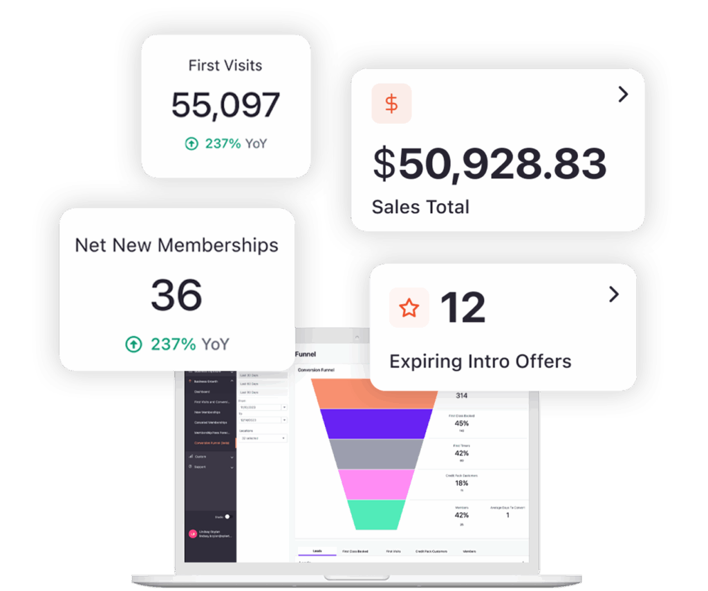- Data-driven decisions, not guesswork: Get real-time insights into class performance, revenue trends, instructor metrics, and more—so you can grow with confidence.